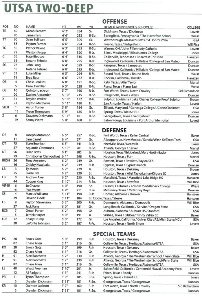 I think it’s best front seven we’ve seen all year. I really do. I think they’re athletic. I think they’re physical. I think there’s a lot of talent there. That jumps off at me… There’s no shortage of athletes running around. They play a lot of guys. – Rice Football head coach Scott Abell on the UTSA defense
