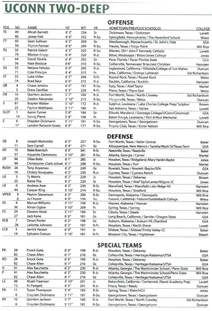 When you see them on film, they are a unit that, they know exactly who they are… They understand their scheme really well and they fit. Teams that want to be multiple have to fit. Because if you’re multiple, but yet you don’t fit, then you open yourself up. They fit really well with all their multiplicity and their blitz and stunt packages that they use with their front, their front six. – Rice Football head coach Scott Abell on the UConn defense